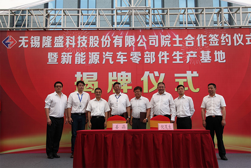 On the morning of June 21, 2018, the signing ceremony of cooperation between our company and Jing Jiang, academician of Canadian Academy of engineering and the unveiling ceremony of "new energy auto parts production base" were held in lungsheng science and technology factory.